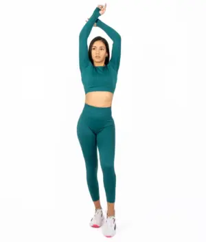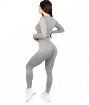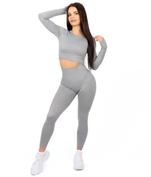 A set with a long-sleeved top is suitable for longer jogging, yoga or pilates, i.e., for that type of activity where the emphasis is on slower movements. Due to the unique cut that perfectly adapts to the curves of the body, you can wear this combination even outside the premises of the fitness studio, at a casual lunch or a day out.